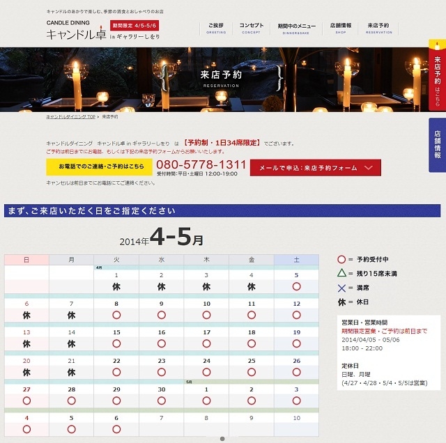 • 日本初コンセプトレストラン 「キャンドルダイニング~キャンドル卓~」予約受付中