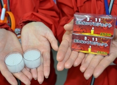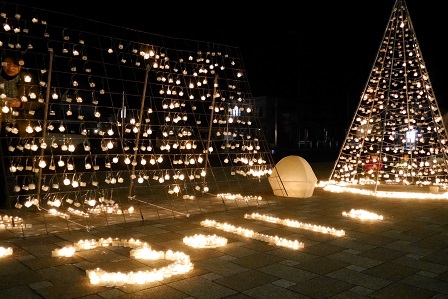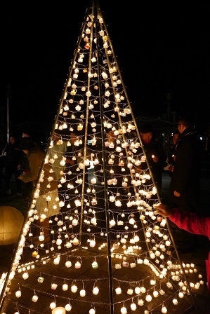 当日は午後7時から1時間、持ち寄ったキャンドルを灯して、キャンドルツリーや「3・11」の文字など作られました。