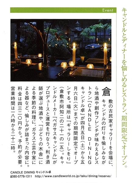 • Osera陽春号で「CANDLE DINING キャンドル卓」オープンについて掲載されています