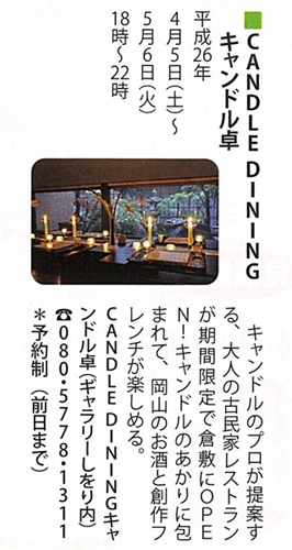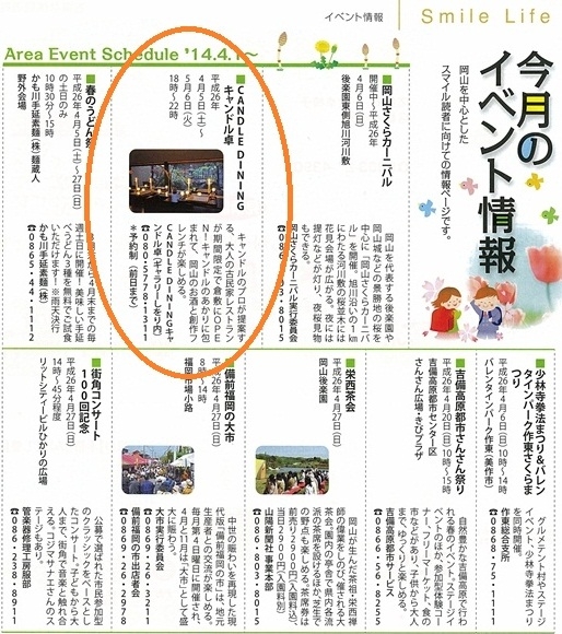 • 生活情報誌「Smile 4月号」にて、CANDLE DINING キャンドル卓が紹介されています
