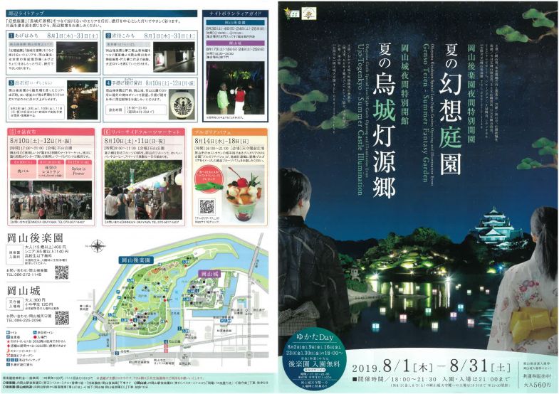 8月1日~、岡山の夜をライトアップする「夏の幻想庭園」と「夏の烏城灯源郷」が同時開催されます。