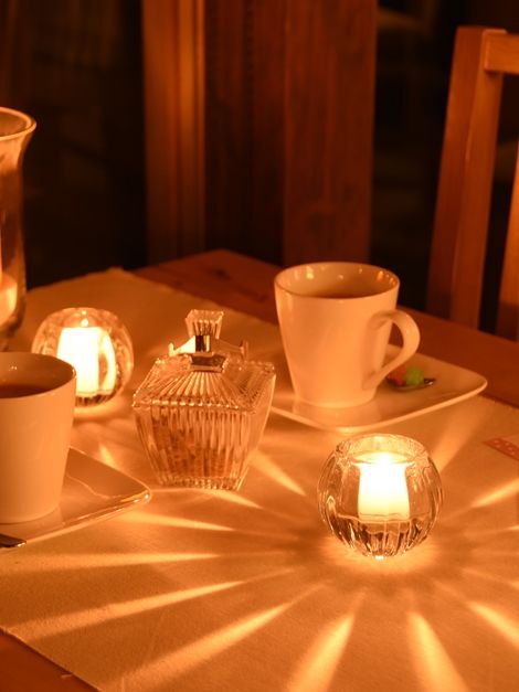 → 食事の場や、団欒空間へも☺ ブリキランタン「六角」 - ぷかぷかバスキャンドル