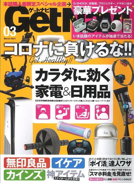 月刊誌『GetNavi 3月号』(2021年1月22日発行)に、「ぷかぷかバスキャンドル」が掲載されました。