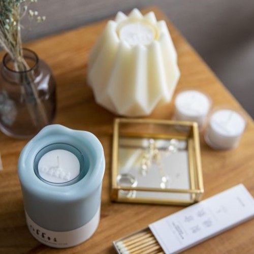 「溶けないキャンドル」でできた何度でも使えるキャンドルホルダーと、そのキャンドルホルダーで利用できる3種類の上質な香りを楽しめるフレグランスカップキャンドルを中心に展開します。