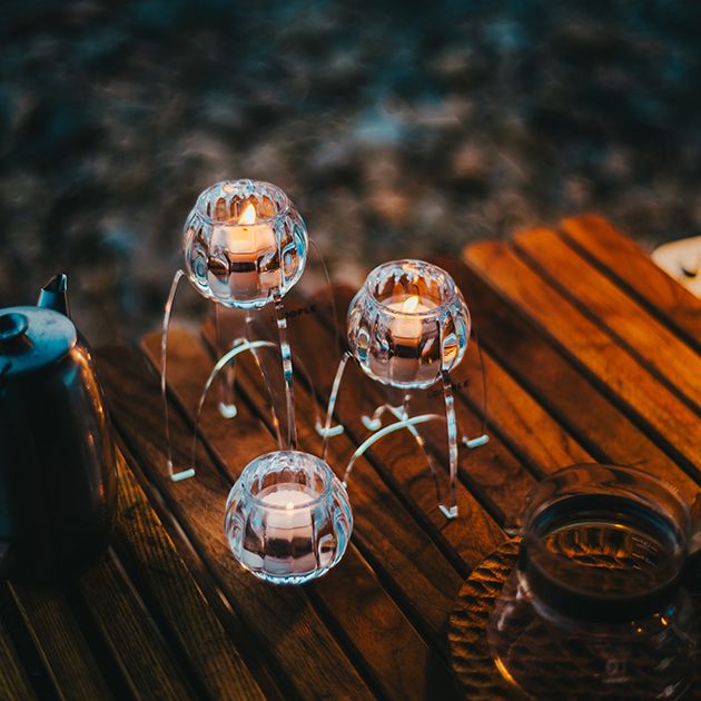 風に強いキャンドルやランタンで、インテリア性のある心地よい空間を作ります。