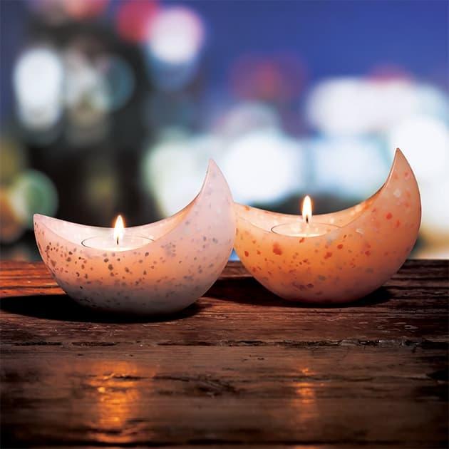 - 三日月型でテラゾー柄、繰り返し使える アロマキャンドルホルダー「ツキ」