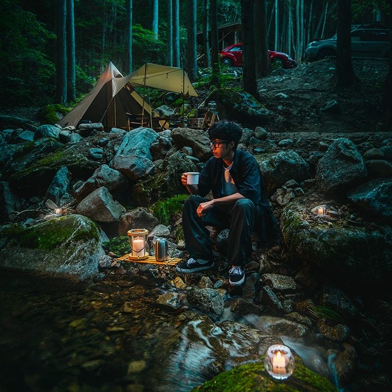 キャンプでは、ピスタチオカラーのキャンドルグラスと合わせて置いて灯しています。温かな灯りにとても癒されてお気に入りです。