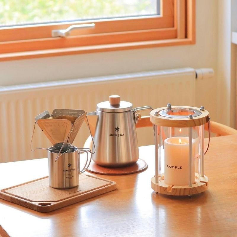レザーのハンドル付きで、ナチュラルなキャンプギアになじむ色合いと素材感が、さりげなくキャンプサイトの雰囲気を格上げしてくれます。
