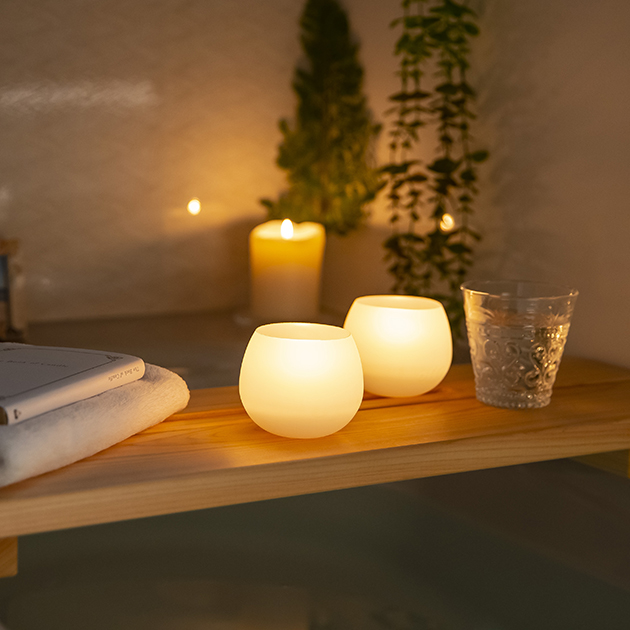 ホルダーから溢れるふんわりとした優しいあかりと良い香りに包まれた幻想的なバスタイムが過ごせます。