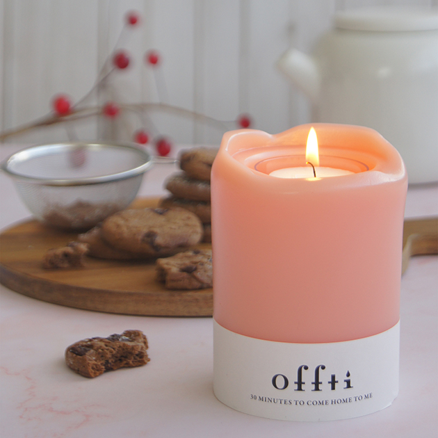 写真に使用されているキャンドルは「キャンドルホルダー「メルティー」(コーラルピンク/ピュアリリー)」。
