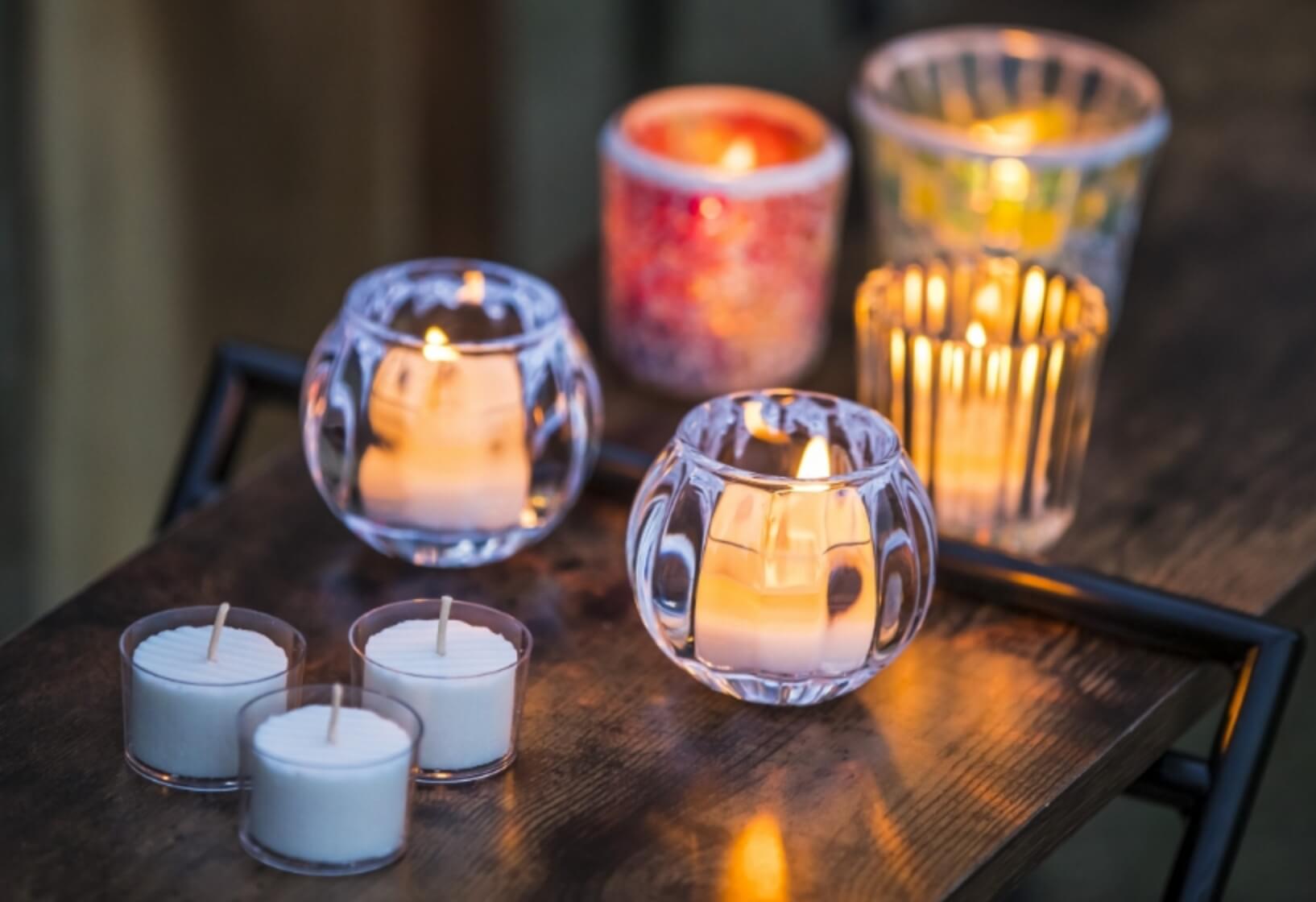 カップキャンドルは取替式なので、何度でも手軽にあかりを楽しめます。