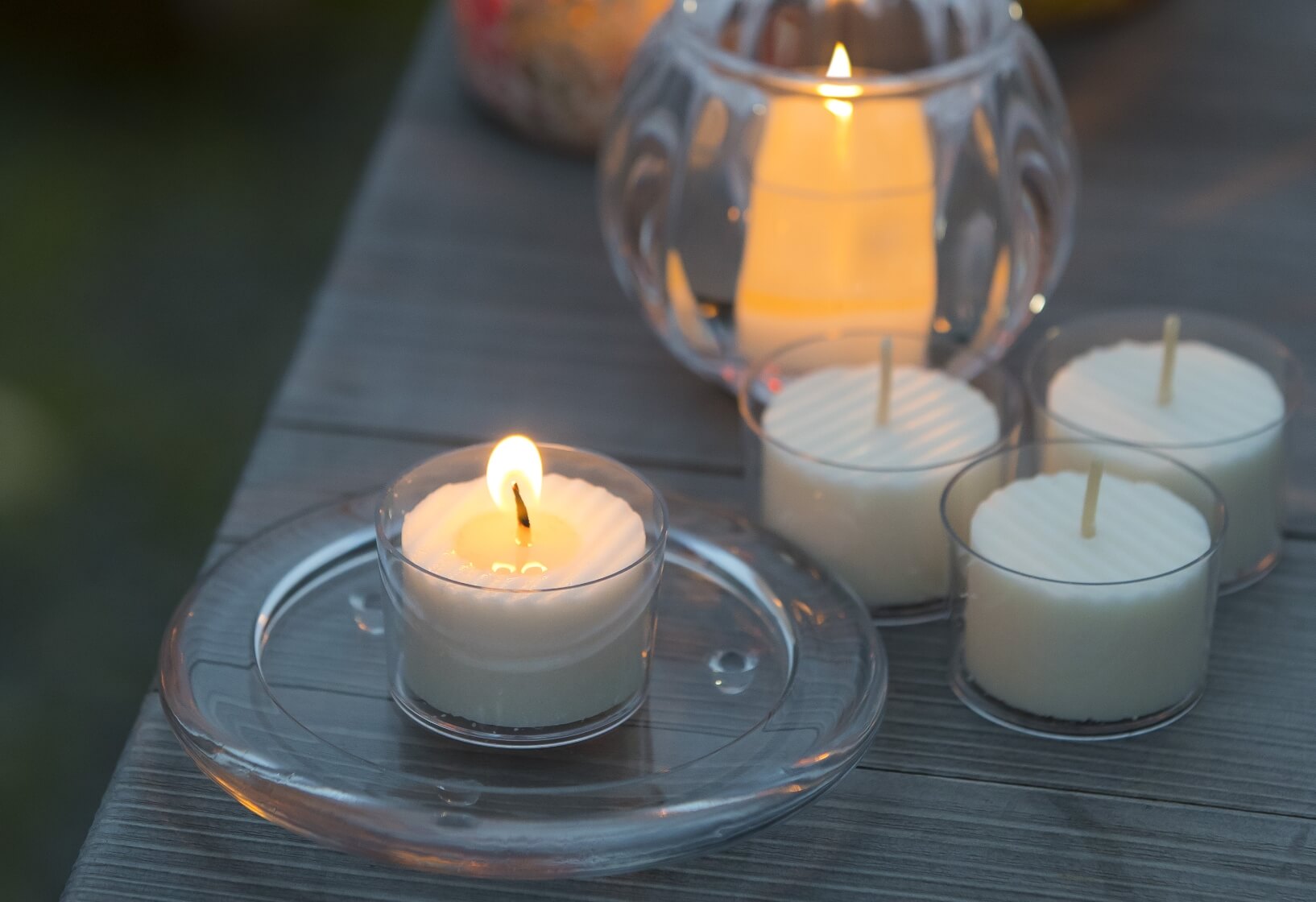 暗くなる前にキャンドルを灯せば、優しいあかりが少しずつ存在感を増して幻想的な空間に。