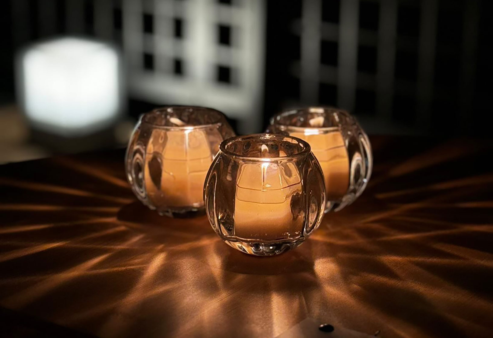 キャンドルを灯せば、クリスタルのような光が揺らめき、テーブルにやさしいグラデーションを描きます。