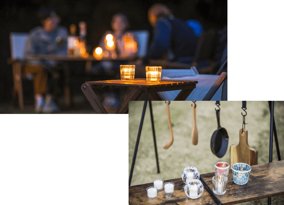 キャンドルの温かなあかりが、キャンプを極上のチルアウト体験へ。