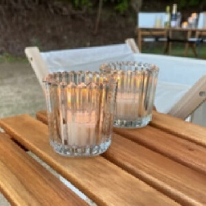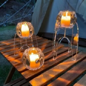 光をまとうたびに異なる表情を見せ、どの瞬間も魅力的。アウトドアシーンに、くつろぎのひとときと彩りを添えるキャンドルグラスです。