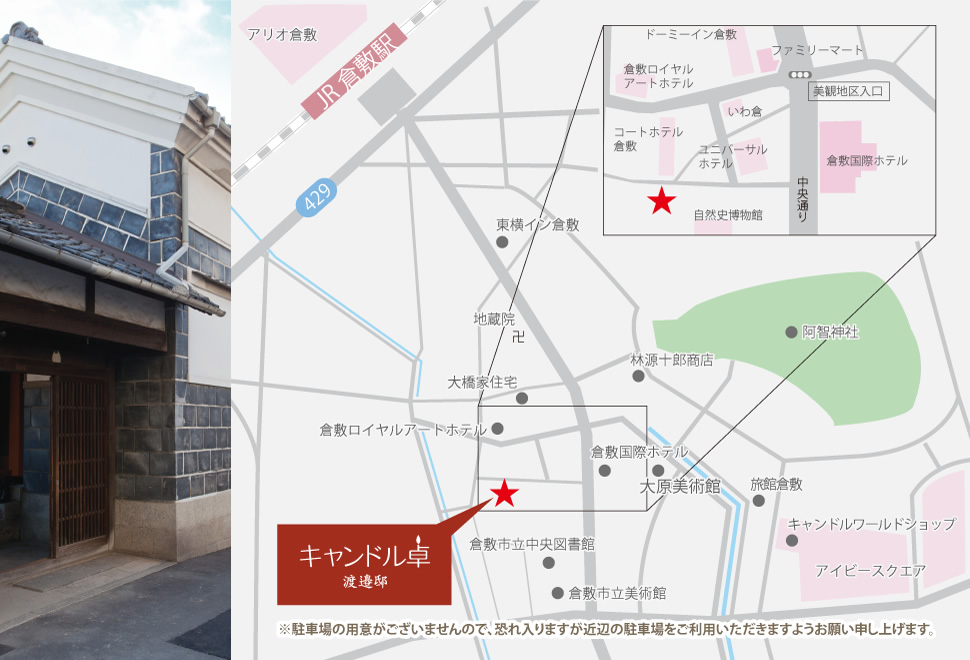 | 住 所 | 〒710-0046 岡山県倉敷市中央2丁目5-19(JR倉敷駅より徒歩12分) |