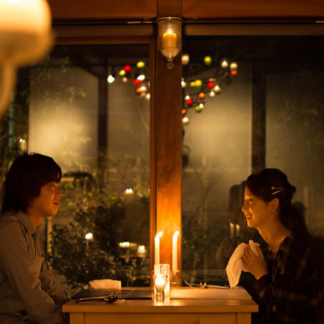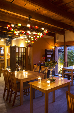 古民家の佇まいとキャンドルのあかりに包まれたレストランです。