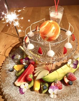 デザート&フルーツの盛合せを大迫力の大皿で提供するので、