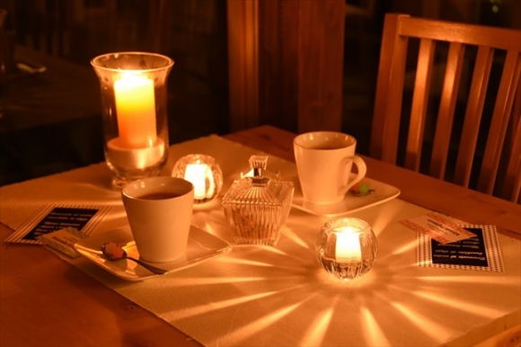 キャンドルを使いリラックスした空間でお食事をしますと、和み、会話が弾む効果もあります。